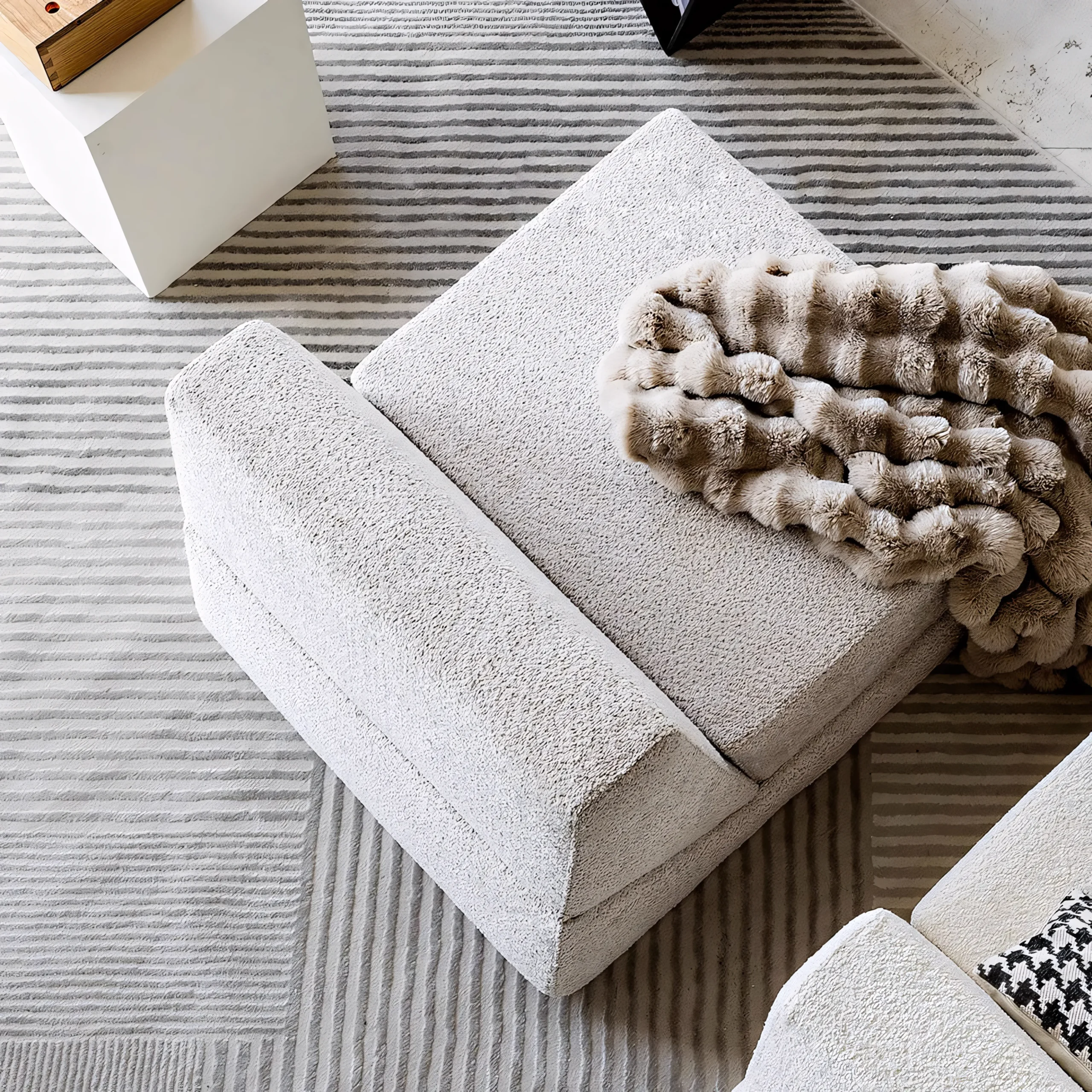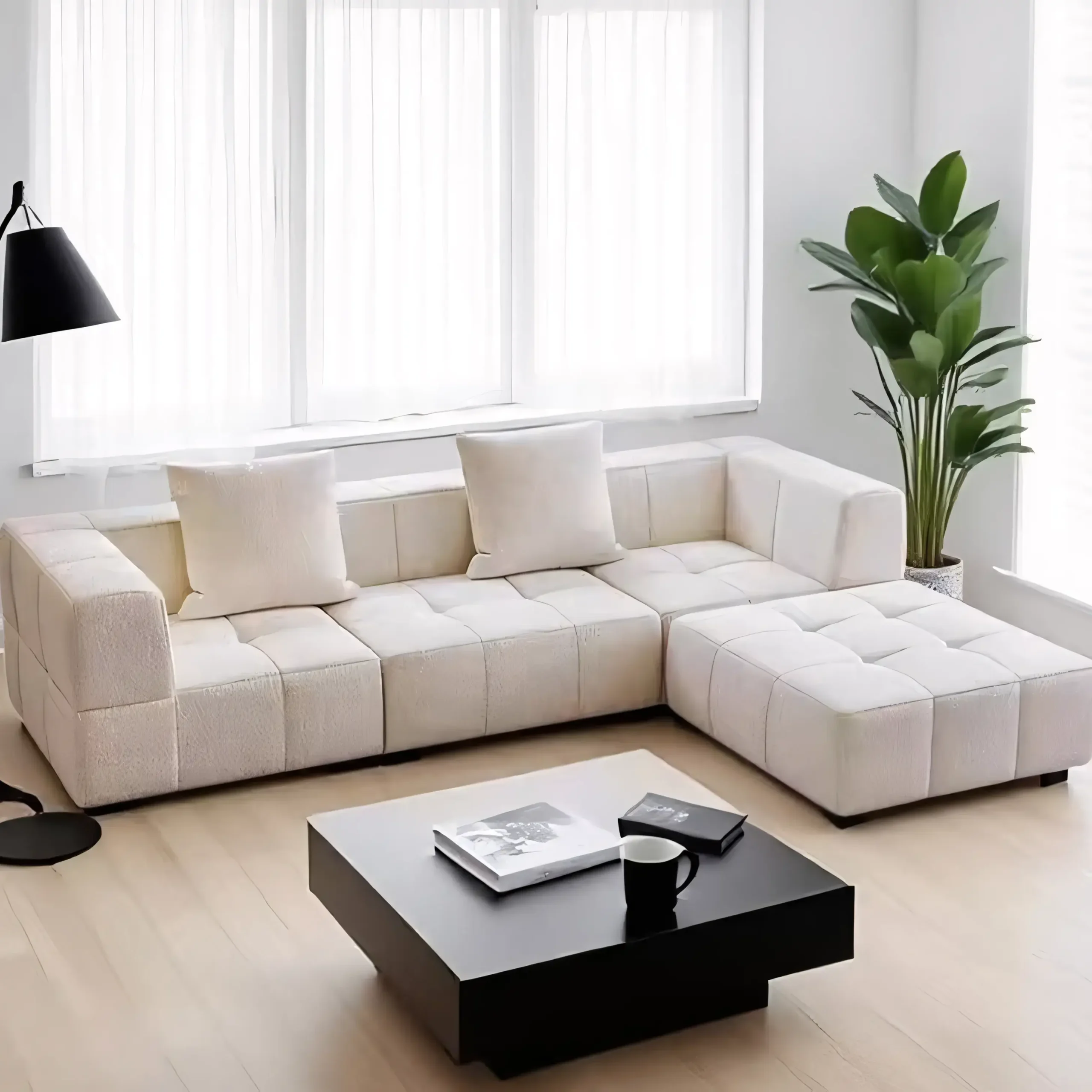 • Deep Seating Grid Tufted Low Profile Couch – Cloud Modular System in Cream Boucle Fabric