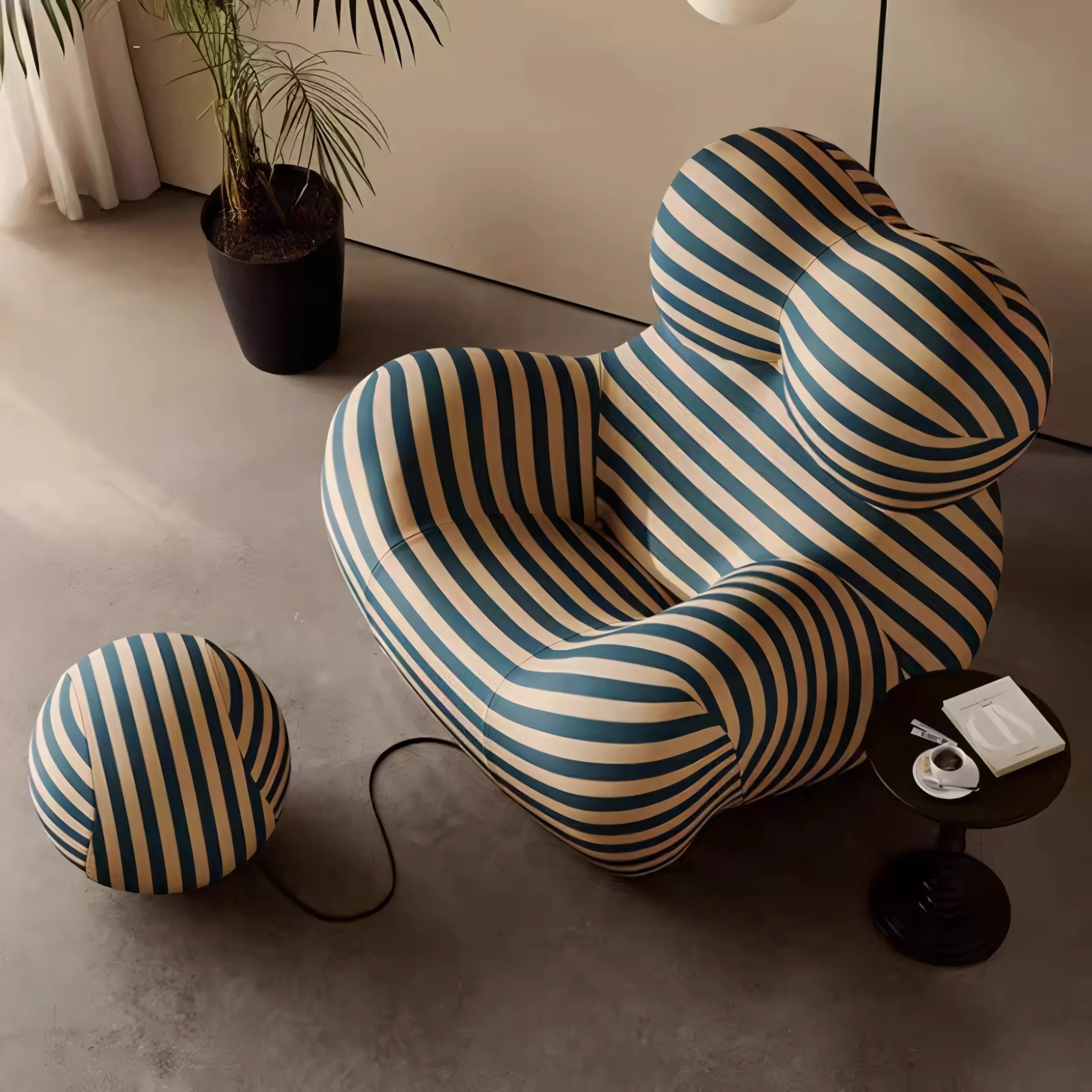 • Modern Striped Jersey Fabric Lounge Chair with Spherical Ottoman