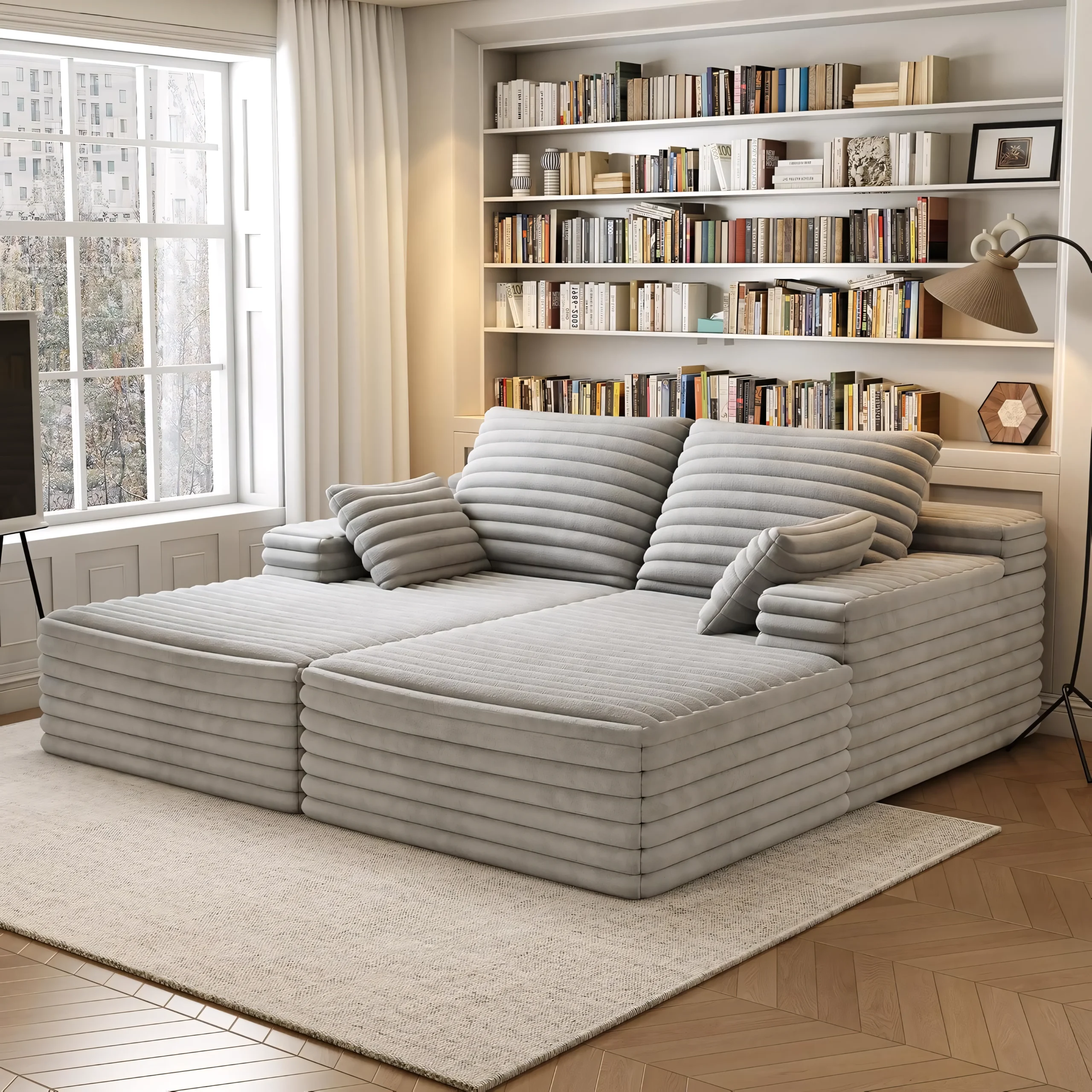 • Modern Ribbed Modular Floor Sofa – High-Density Foam Compression Set