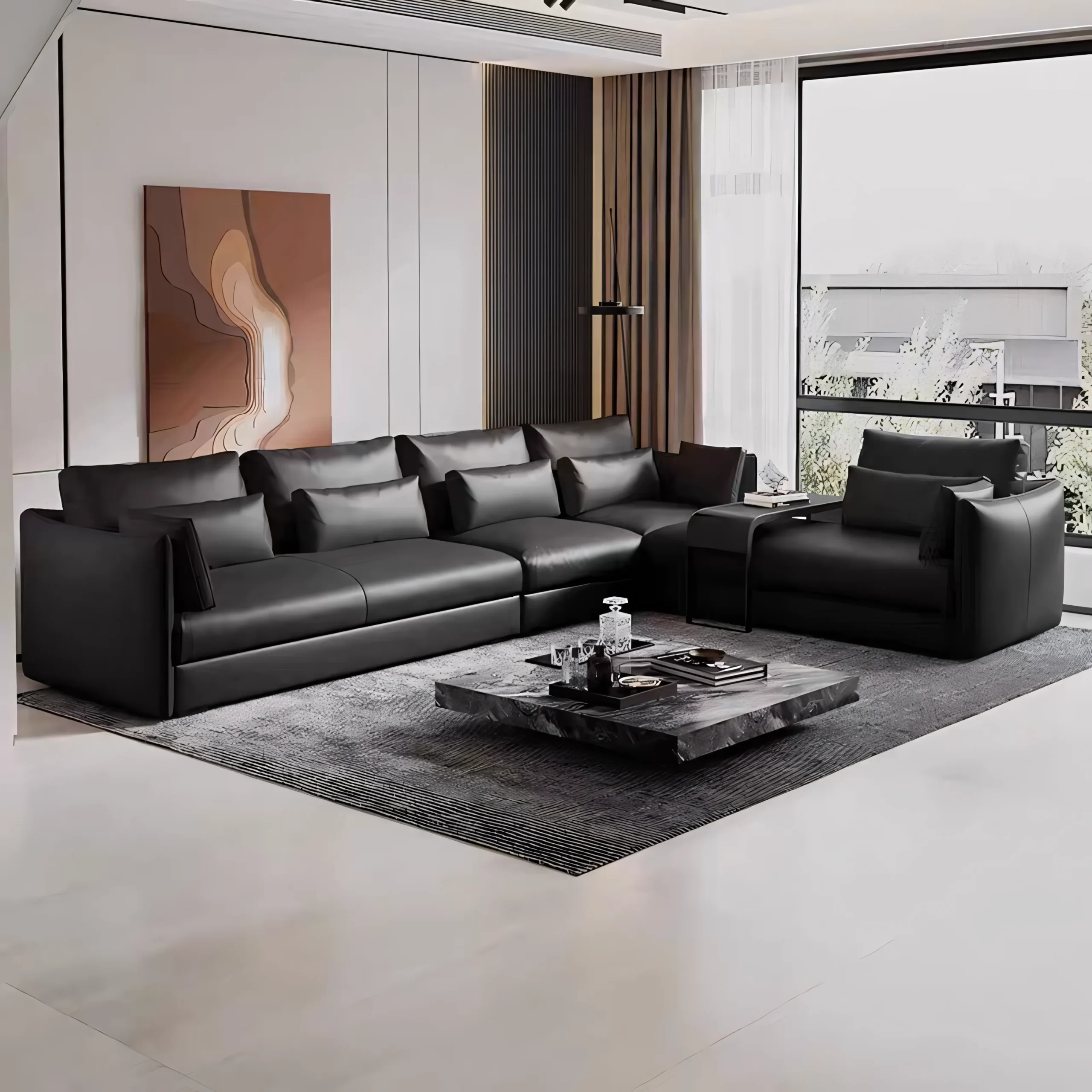 • Contemporary Slim-Arm Leather Sectional Sofa | Modular Low-Profile Design