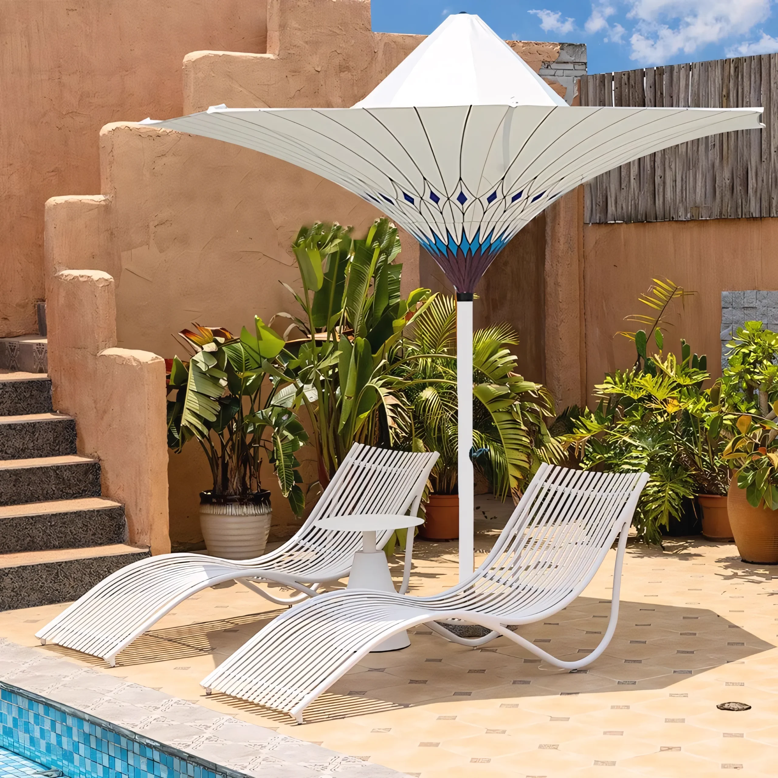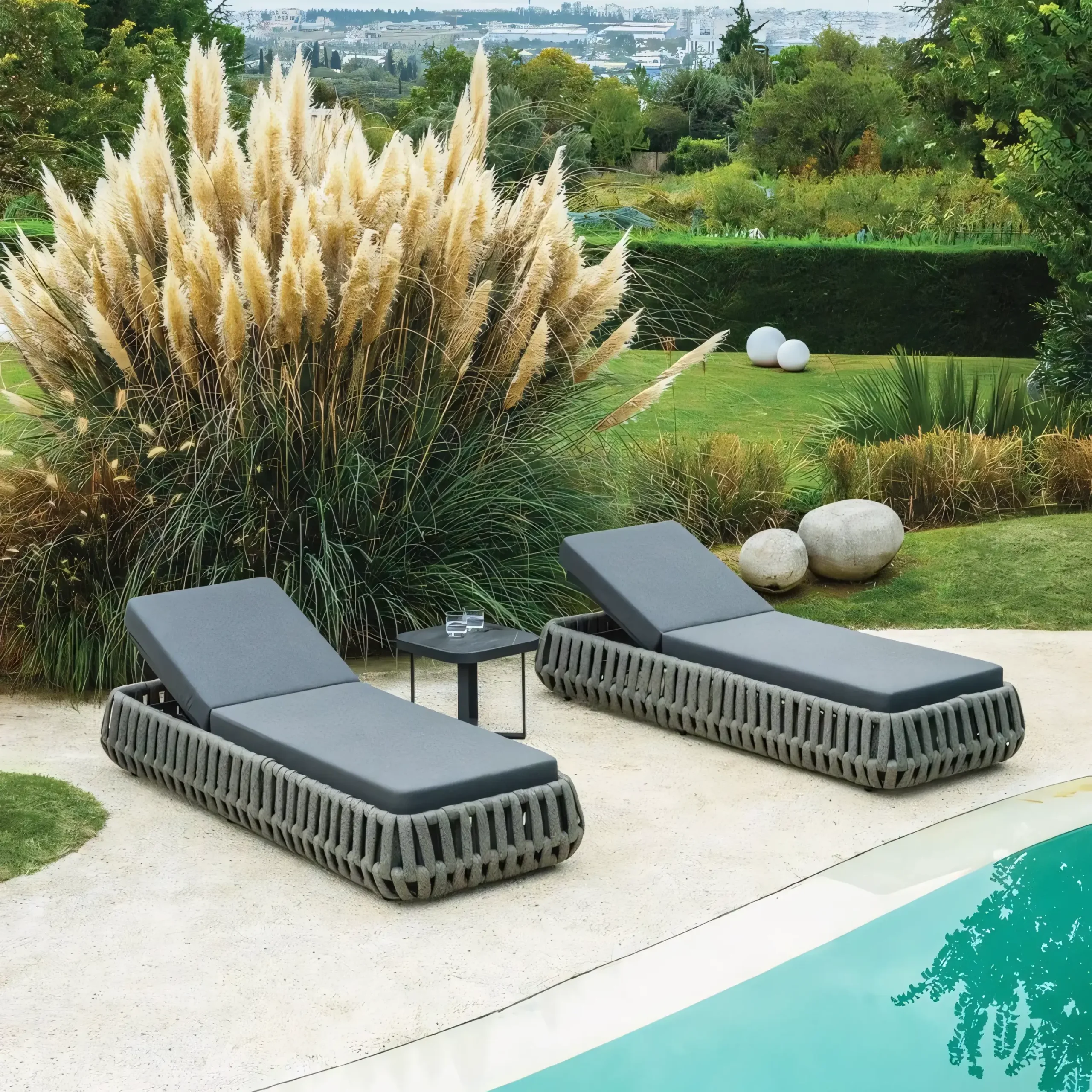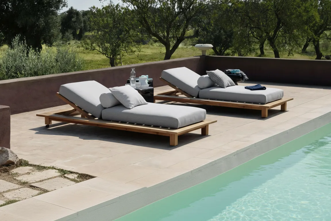 Commercial-grade poolside loungers designed for resort and hospitality environments