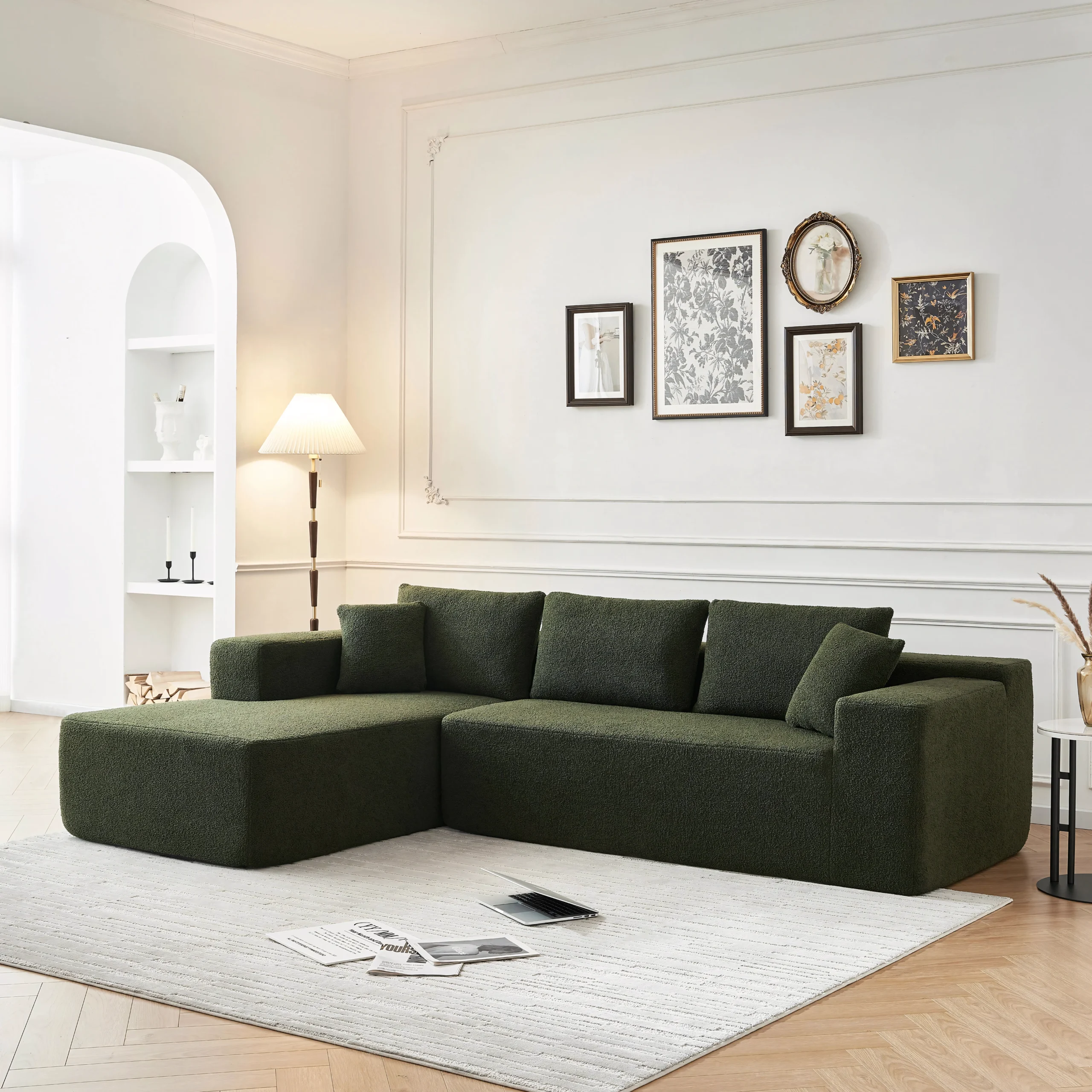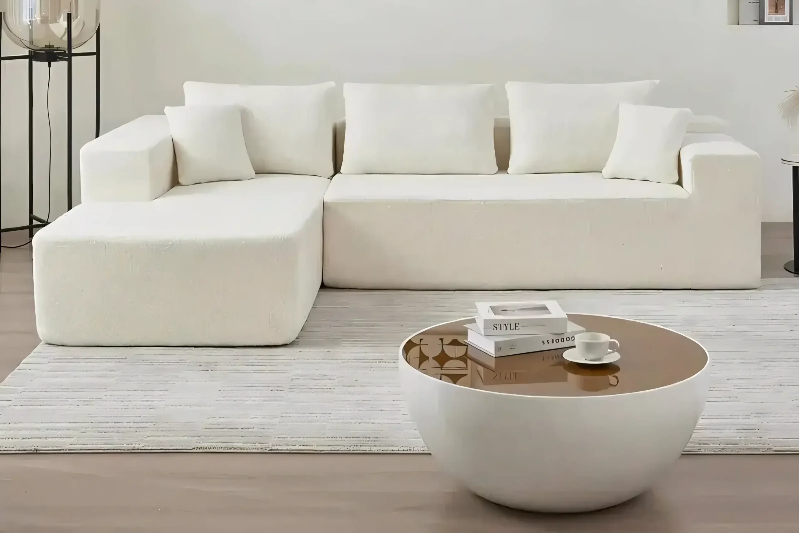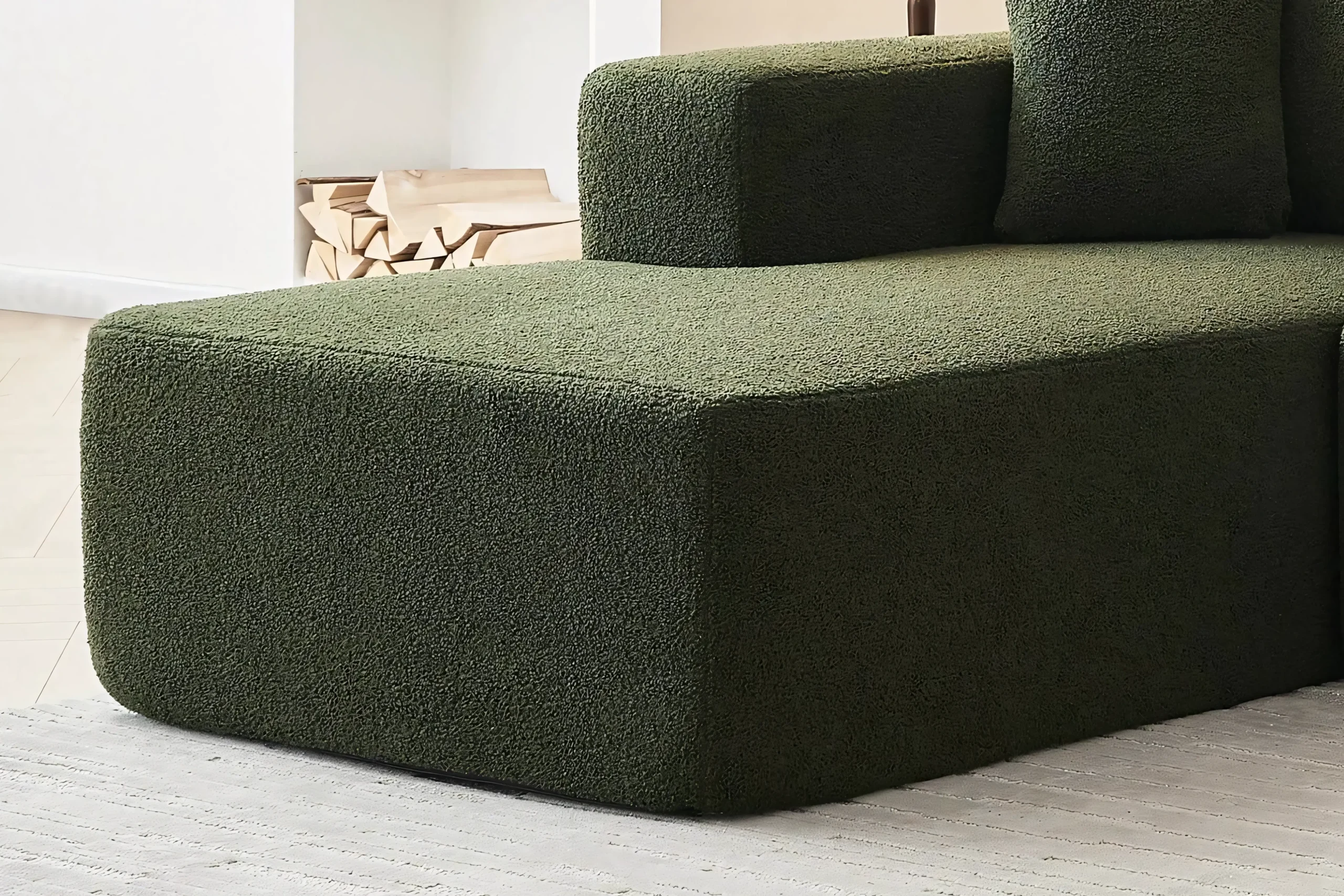 Upholstery: Premium high-performance boucle fabric (stain-resistant options available).