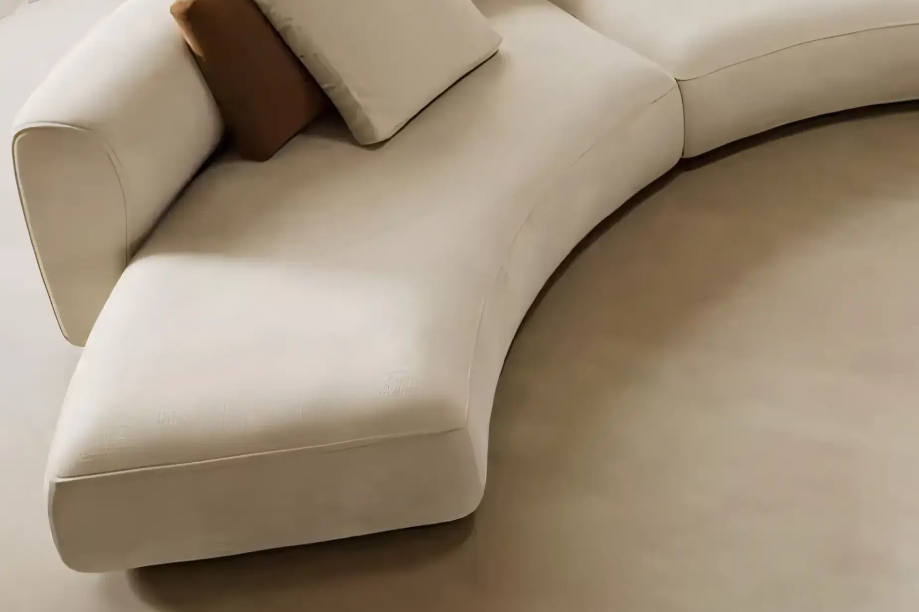 We utilize Gerber Technology automated cutters specifically for curved upholstery. This ensures millimeter-perfect fabric tension, eliminating the unsightly wrinkles or "bunching" often seen in hand-cut curved sofas.