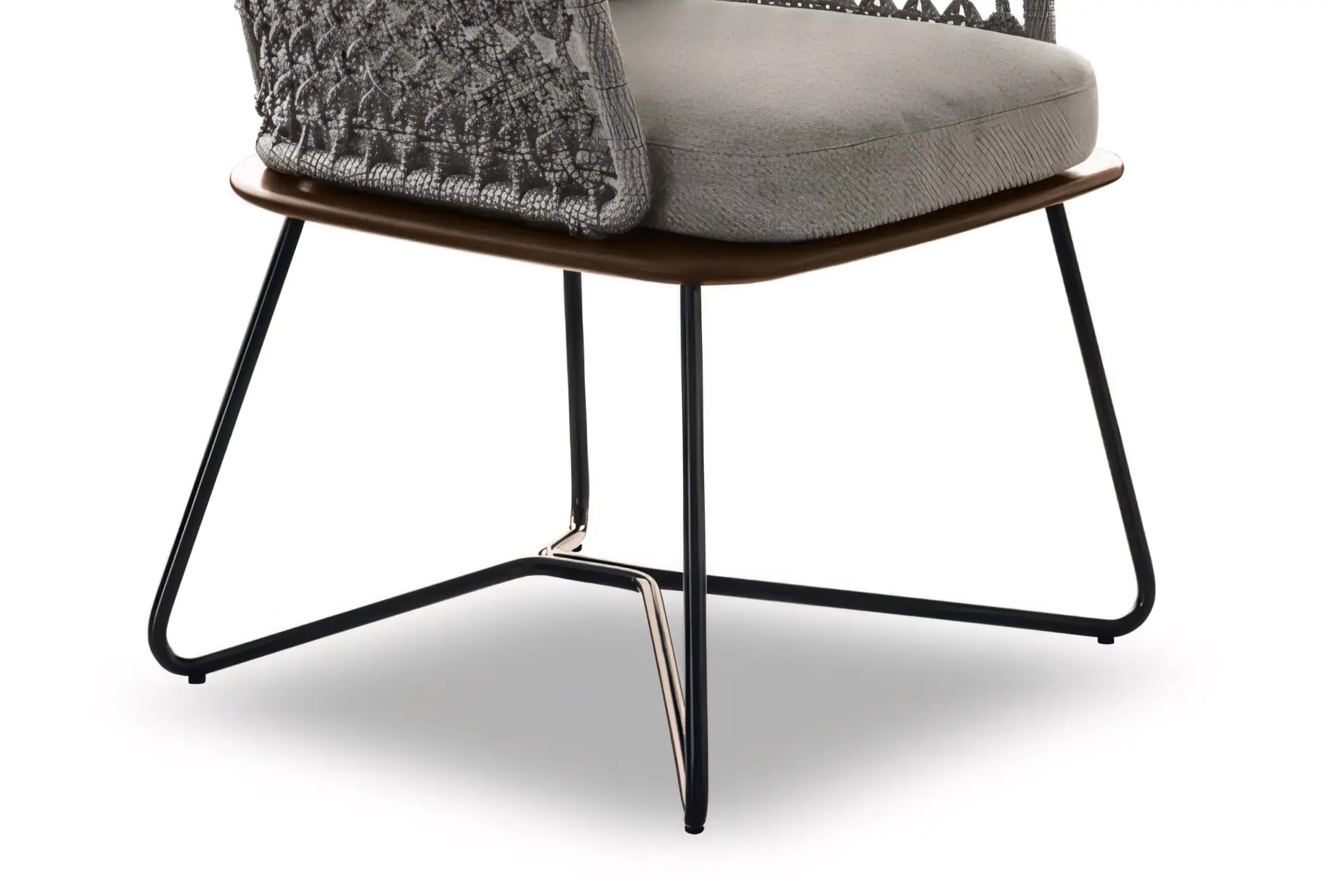 The seat foundation is constructed from solid A-Grade teak wood, naturally rich in oils to repel moisture and rot. This premium material not only adds a warm, organic contrast to the metal frame but also prevents the "cold seat" feeling often associated with full-metal chairs.