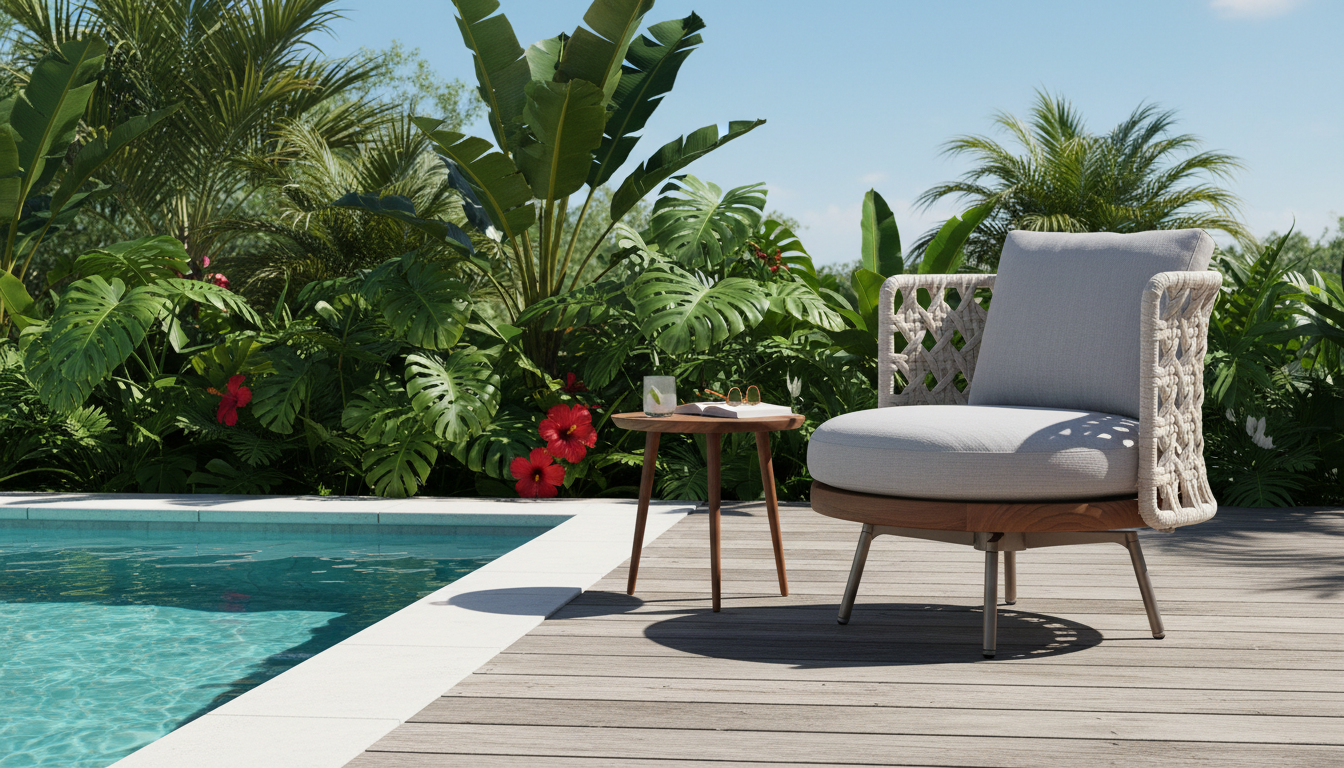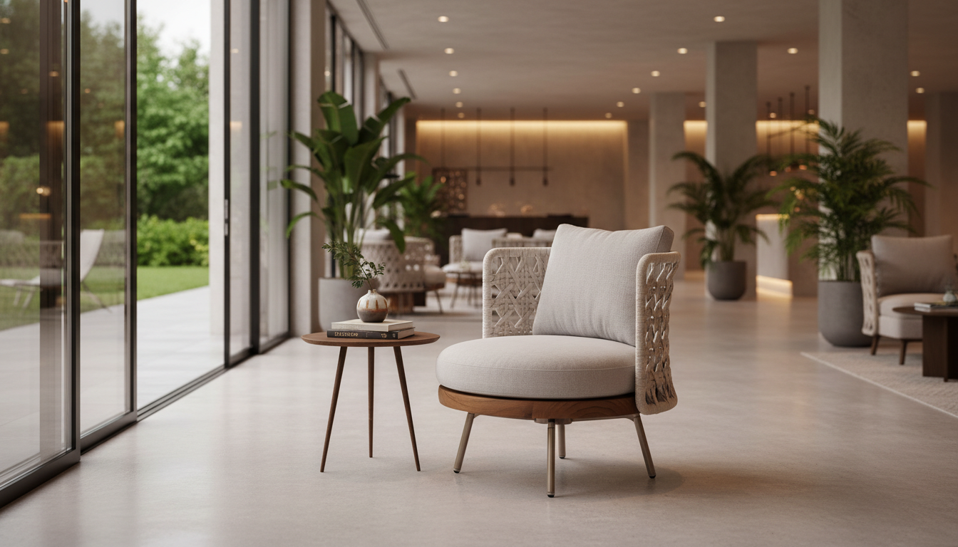 Model JS-PLC0012 is a luxury outdoor lounge chair engineered for the global hospitality market. We fuse Minotti-inspired design language with industrial-grade weather resistance. Featuring a solid Grade A teak base and intricate rope weaving, it delivers 5-star resort elegance at competitive factory-direct export pricing.