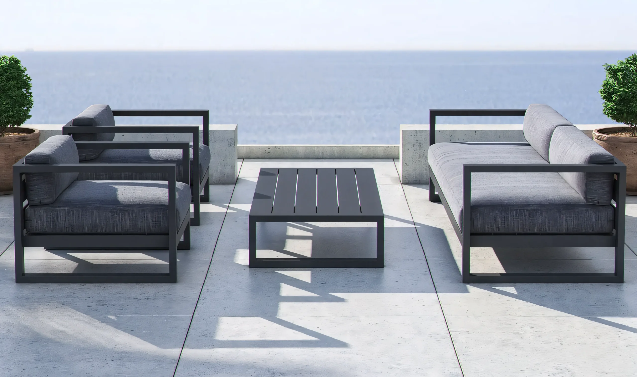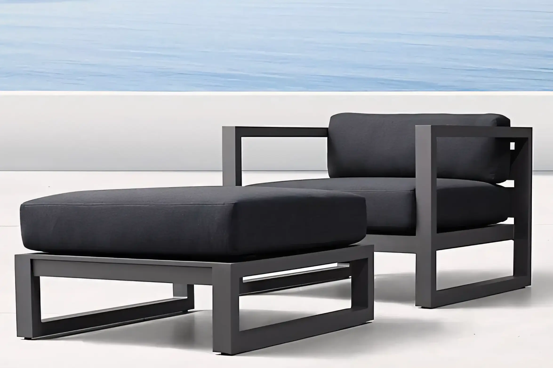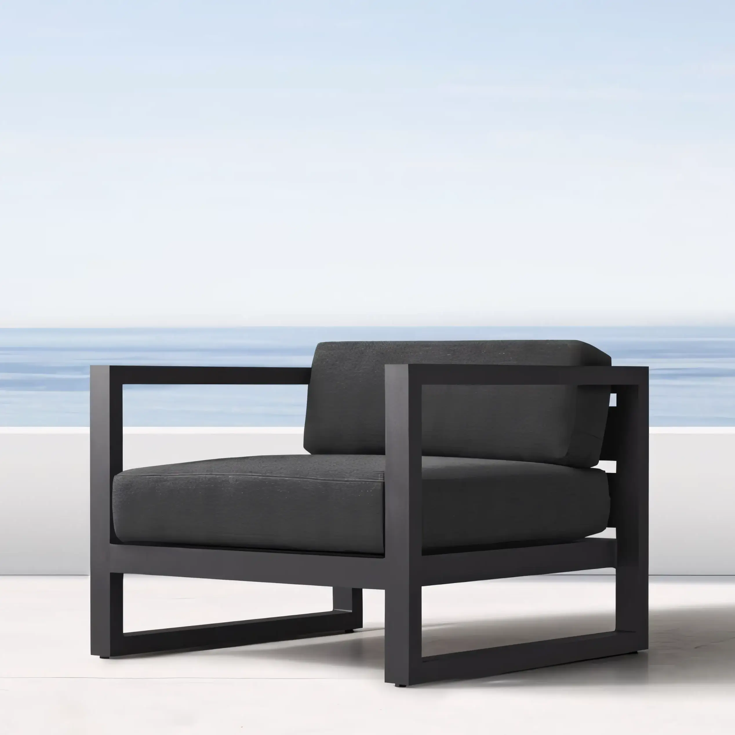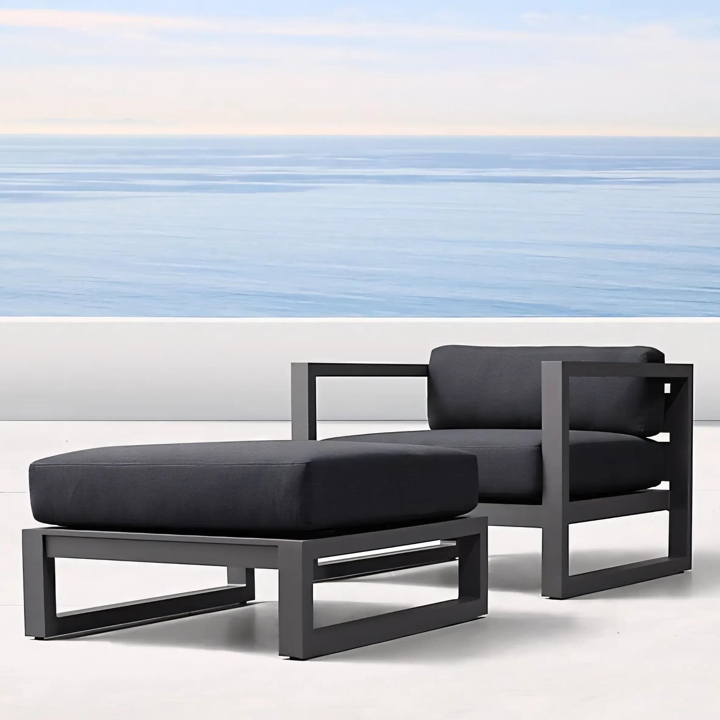 A masterclass in reductionist geometry. The JS-OGS0087 series features a bold, architectural silhouette that defines contemporary outdoor living spaces. Its wide-profile aluminum arms and deep-seating ergonomics offer the look of high-end Italian design without the delicate maintenance. The cushions are wrapped in premium fade-resistant fabric, ensuring the Charcoal / Grey aesthetic remains sharp season after season. Perfect for minimalist terraces and modern resorts.