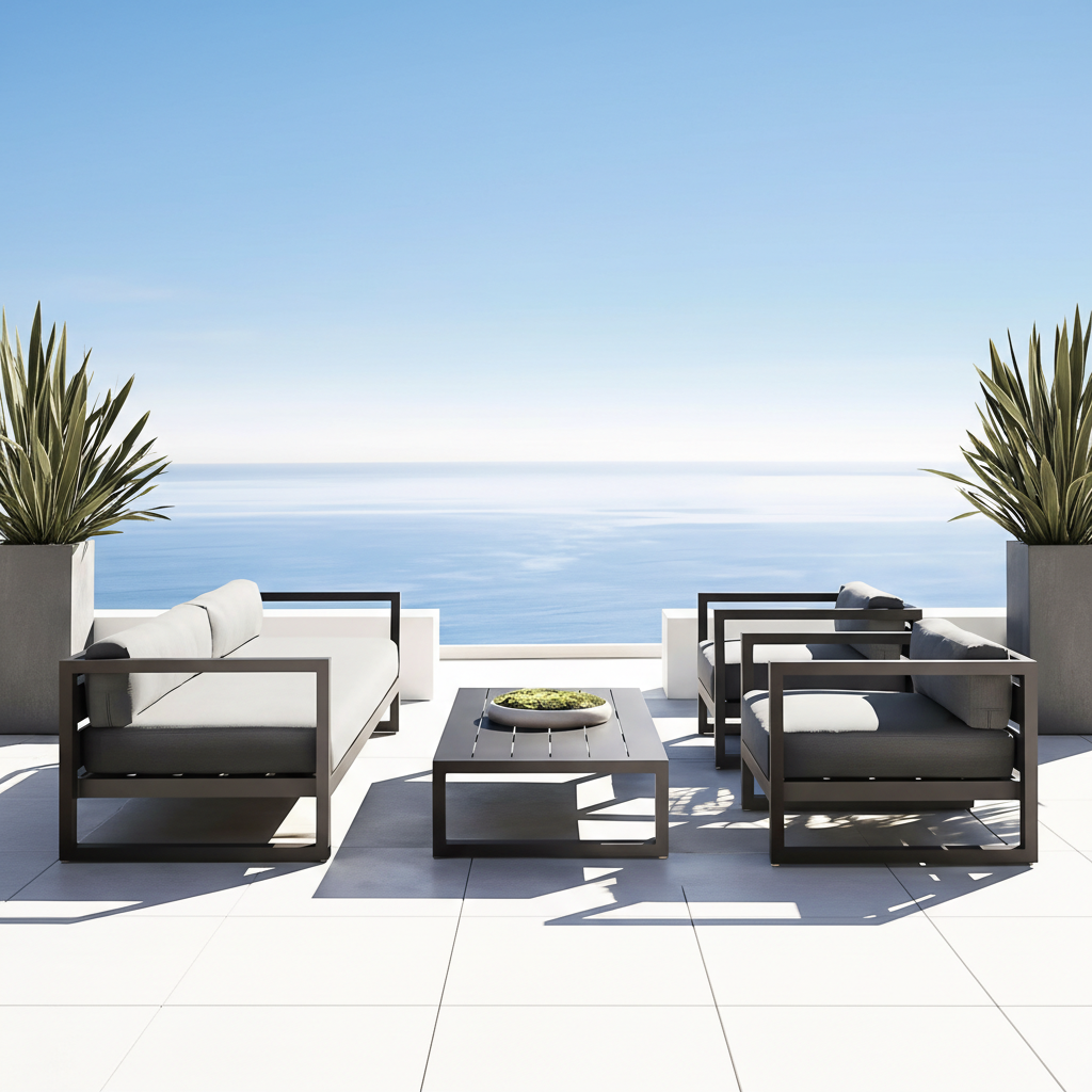 Modern Commercial Grade Aluminum Outdoor Sofa Set – Rust-Proof Powder Coated Frame & Quick Dry Foam