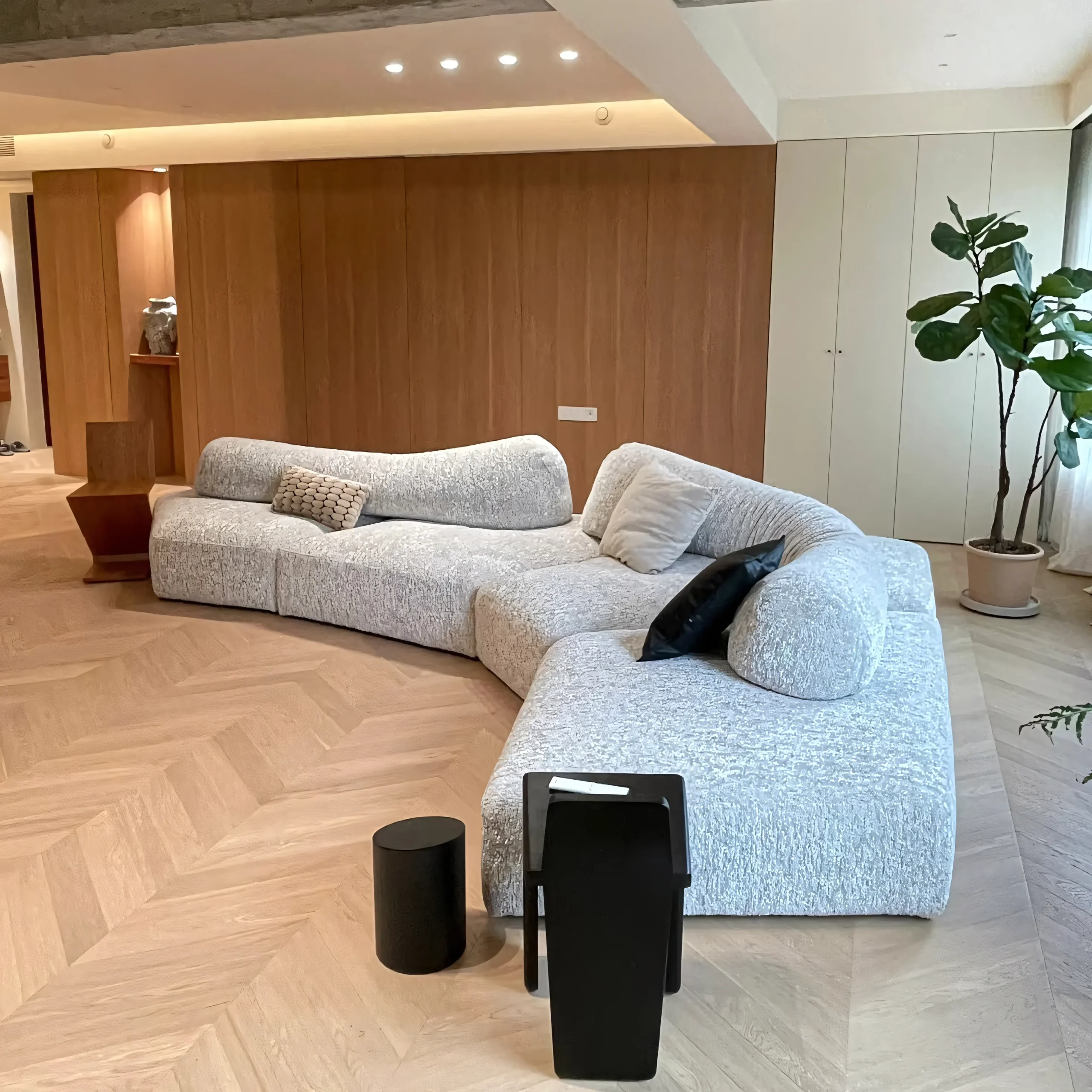 Designed as a sculptural landscape, the JS-S003 is a free-form modular system engineered for modern flexibility. Produced in our advanced facility. We combine Italian organic aesthetics with robust internal construction, delivering a centerpiece that balances artistic freedom with commercial durability. Ideal for luxury hotel lobbies, creative workspaces, and high-end residential projects.