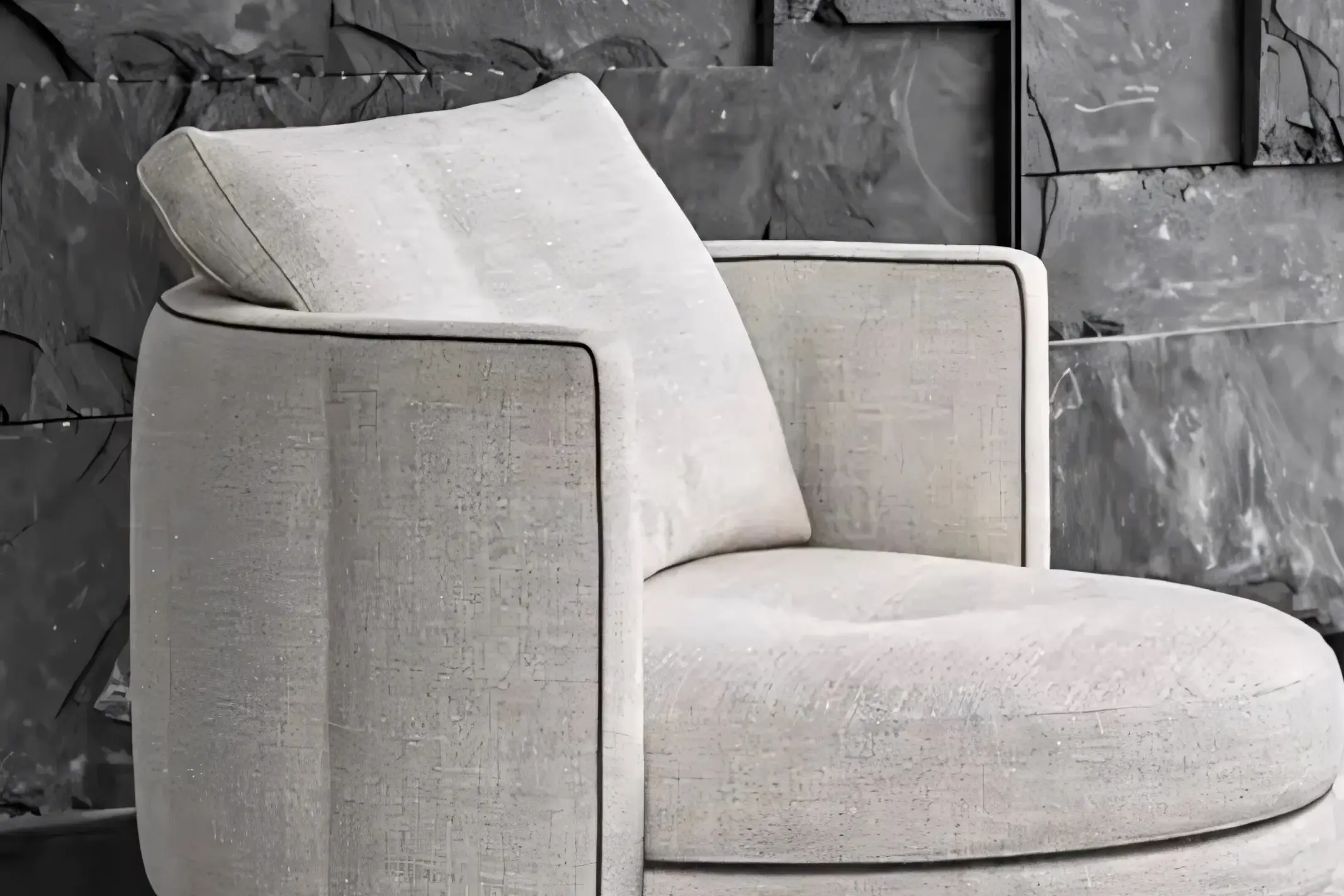 Modern Round Swivel Armchair with Piping Detail for Hotel Lobby & Lounge
