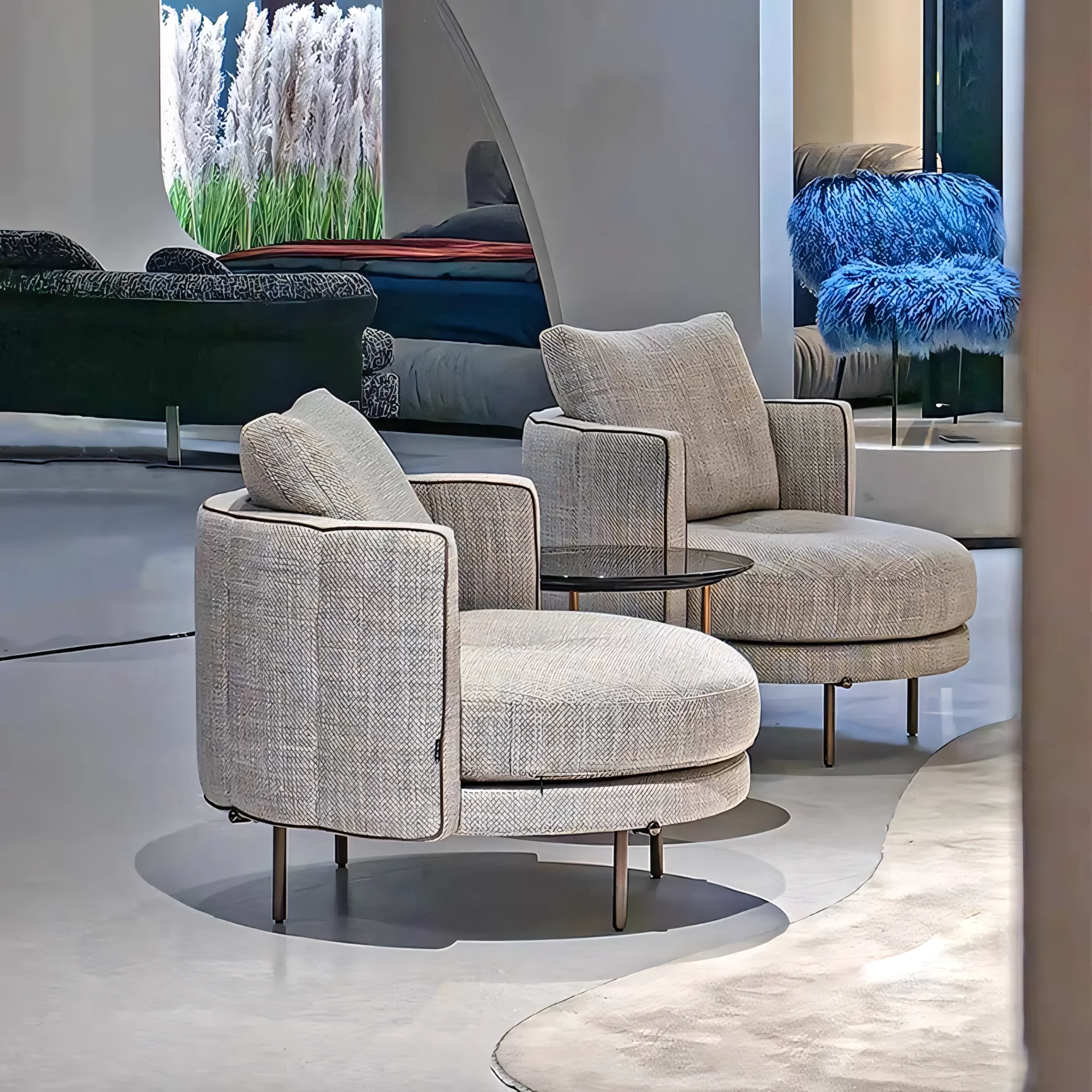 Built to withstand the rigors of commercial environments. Unlike generic sofas, the JS-L017 utilizes a specialized internal mold and heavy-duty hardware to maintain its sculptural shape and smooth rotation functionality year after year.