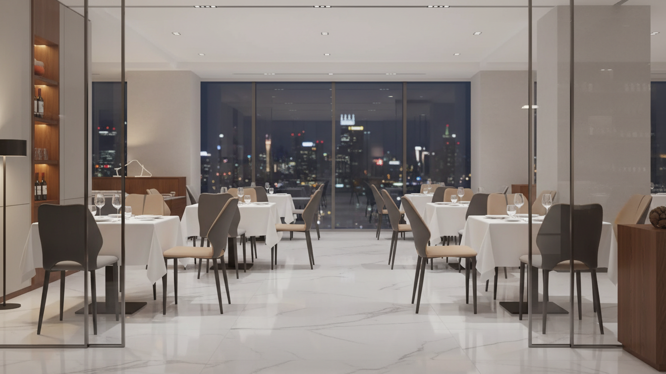 The streamlined, armless profile is engineered to tuck neatly under any table apron—from thick marble slabs to slim glass tops. This "zero-interference" design maximizes walkway space and allows for higher seating density in compact dining layouts.