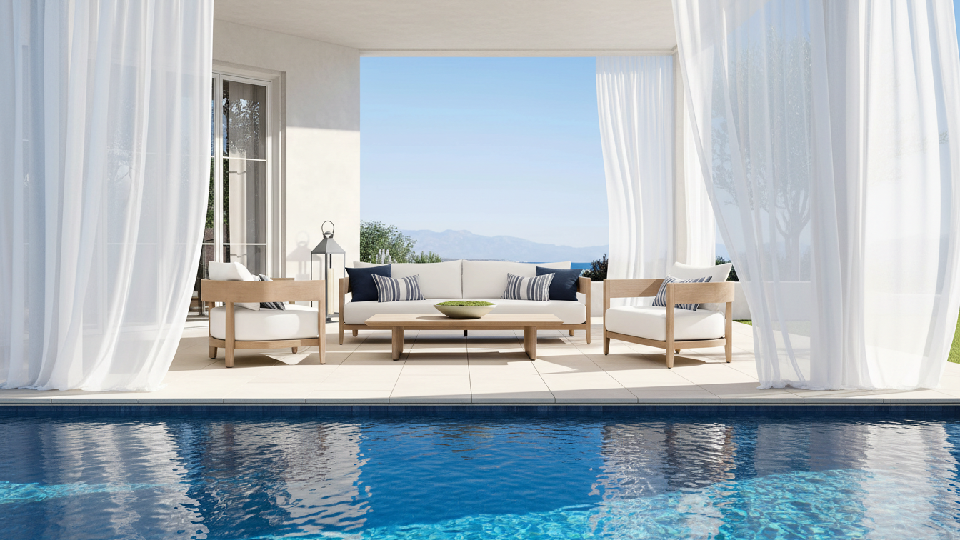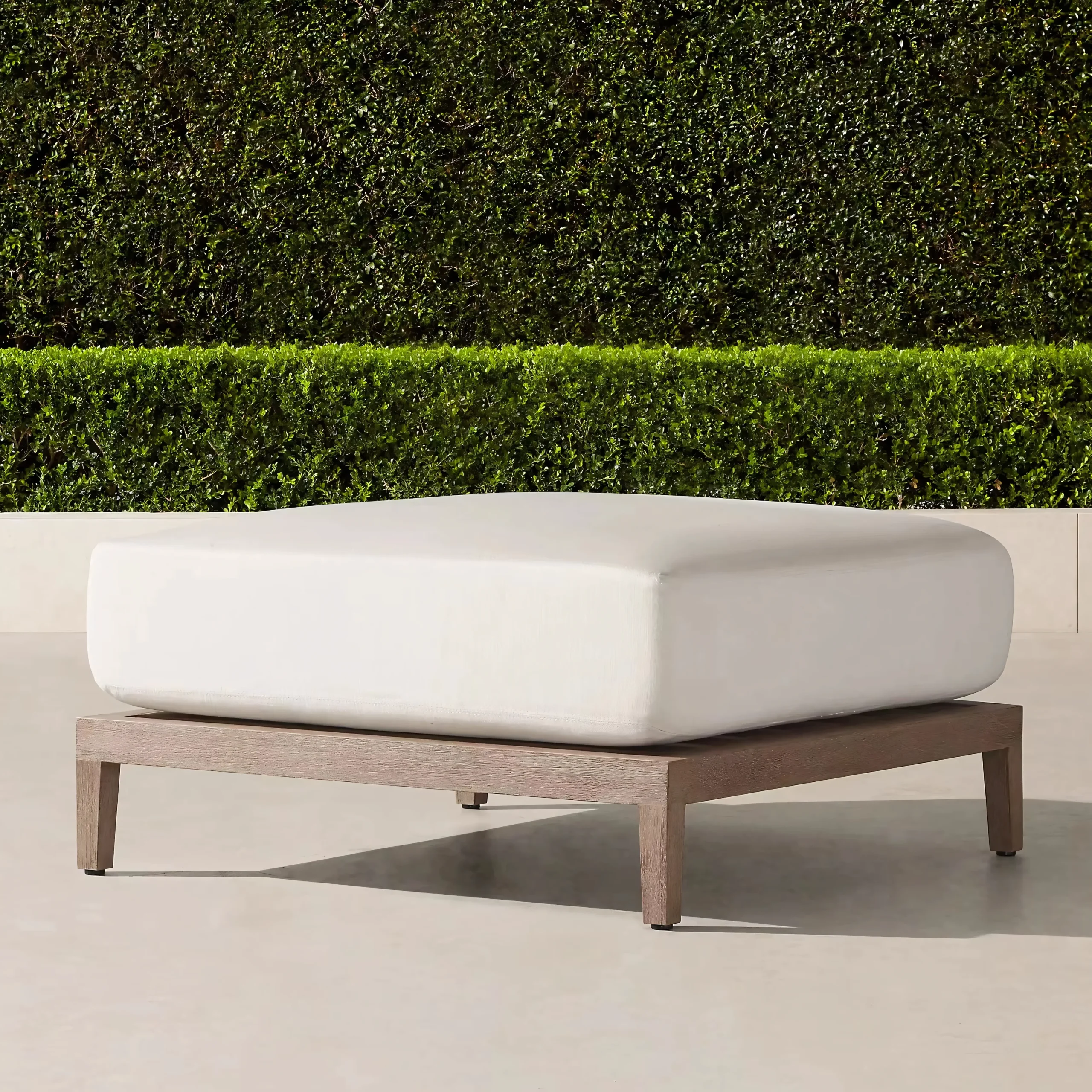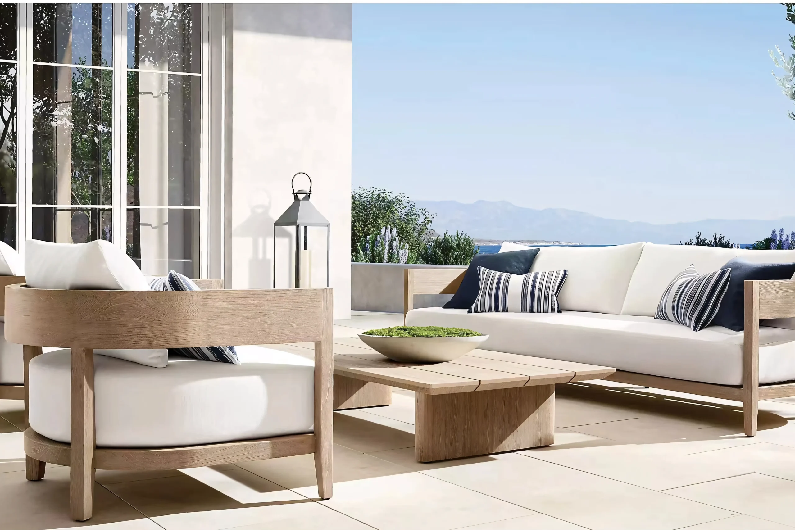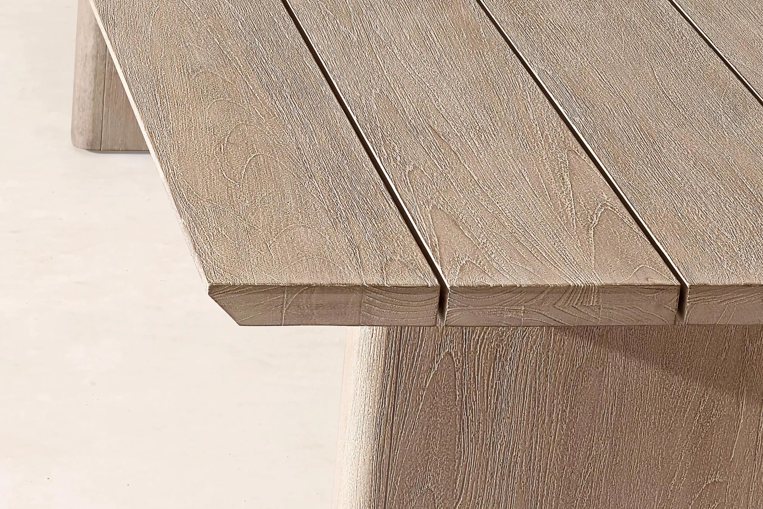 Hand-selected A-Grade teak wood provides the visual warmth of natural timber. Treated with a specialized weathered finish to mimic the grey patina of aged driftwood, it delivers that coveted "Restoration Hardware" aesthetic instantly, without waiting years for natural aging.