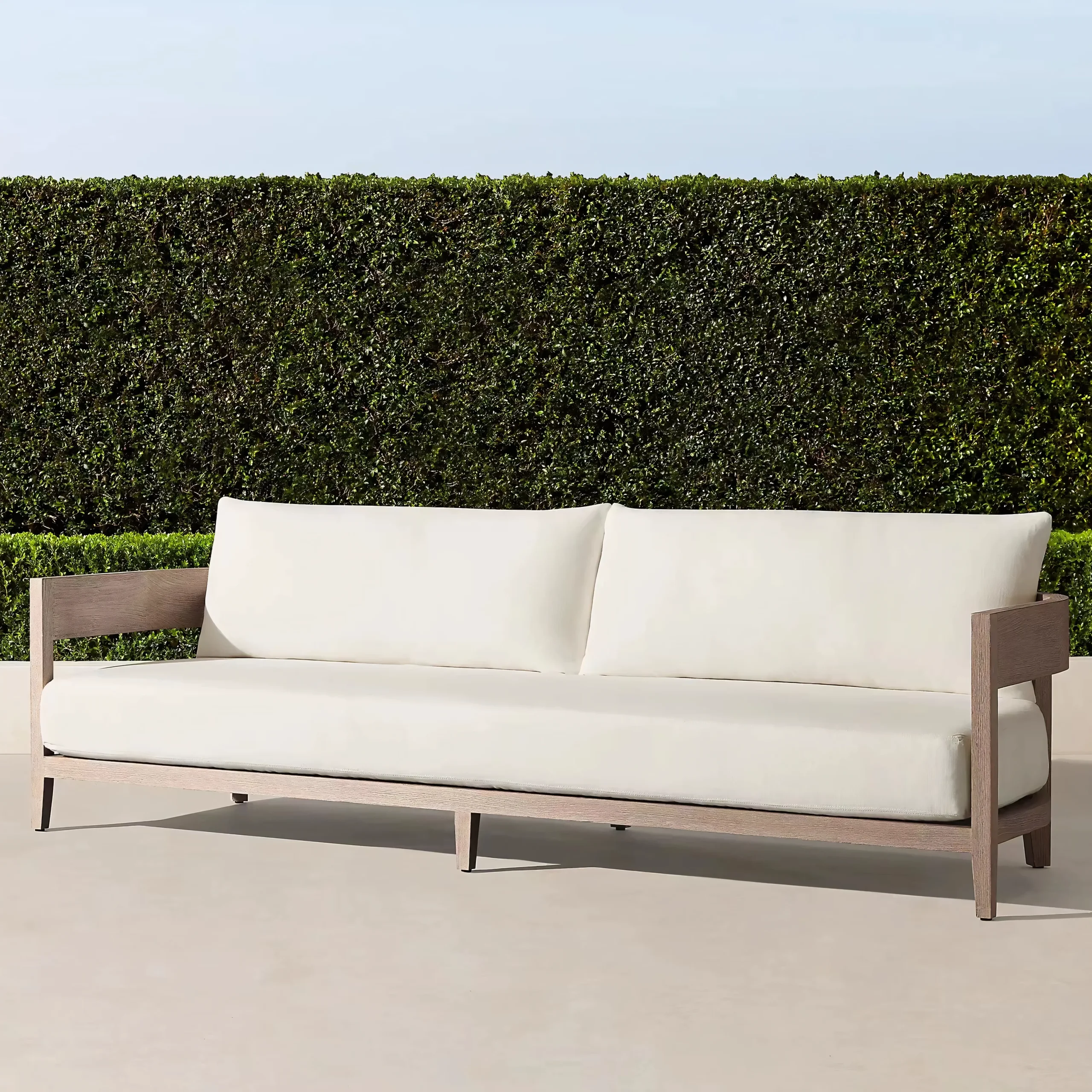 Engineered for the unpredictability of outdoor weather. The cushions feature a high-density "Quick Dry Foam" core that allows water to drain rapidly, preventing mold growth and ensuring the sofa is ready for guests shortly after a downpour.