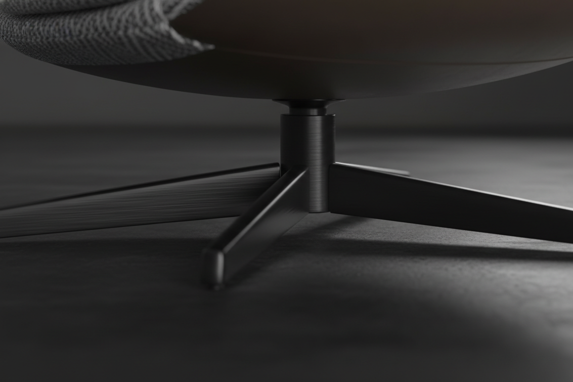 Cross-shaped solid aluminium base in a sophisticated Bronze or Pewter finish. The integrated swivel mechanism ensures smooth 360-degree rotation with an optional auto-return function, keeping your space orderly.